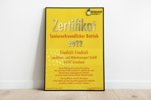 Bereits seit vielen Jahren bietet Friedrich sogenannte „Seniorenumzüge“ an, die optimal auf die Bedürfnisse älterer Generationen zugeschnitten sind. Mit Unterstützung eines Umzugsberaters wird entschieden, welche Leistungsbausteine gewünscht sind. Diese reichen von Ein- und Auspackservice, Zwischenlagerung, Begleitung bei Behördengängen bis zum Fahrdienst am Umzugtag. Das kürzlich verliehene Zertifikat ist eine tolle Anerkennung für die Wichtigkeit eines solchen Angebots.