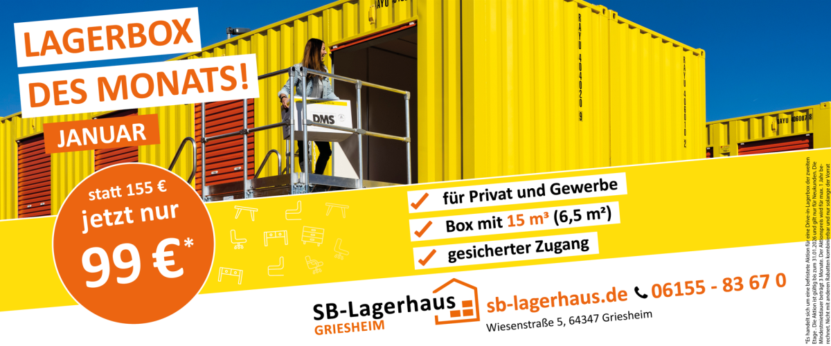 Besonders in großen Städten ist Stauraum rar geworden, jeder 5. Haushalt verfügt über zu wenig Platz. Wohin mit den Siebensachen? Selfstorage, der Trend aus den USA kann eine vorteilhafte Alternative sein. In unserem SB-Lagerhaus in Griesheim (Darmstadt) können Sie Lagerboxen mieten und dort alles einlagern, was derzeit nicht benötigt wird. Unser Angebot im Bereich Selfstorage richtet sich sowohl an Privatkunden als auch an Gewerbetreibende, die aufgrund erhöhter Flexibilitäts- und Mobilitätsanforderungen temporär einlagern müssen, aber dennoch Wert auf zeitliche Verfügbarkeit legen.